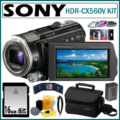 Sony HDR-CX560V HDRCX560 1080p High Definition 64GB Handycam Camcorder with Wide Angle G-Lens and 3-inch Touch-Screen + 16GB Card + Sony Case + Extra Battery + Deluxe Accessory Kit Feature